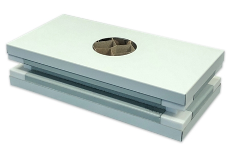 其次是填充物——阻燃型紙蜂窩芯材。這種的結(jié)構(gòu)設(shè)計(jì)使得整個(gè)夾心層具有良好的保溫、隔熱和隔音性能;同時(shí),由于其采用了環(huán)保的紙質(zhì)材料和科學(xué)的蜂巢狀設(shè)計(jì)原理,在保證的同時(shí)還能有效減輕整體重量并提升抗震能力。此外,“阻燃”特性確保了其在特定火災(zāi)環(huán)境下的安全性能表現(xiàn)更佳。